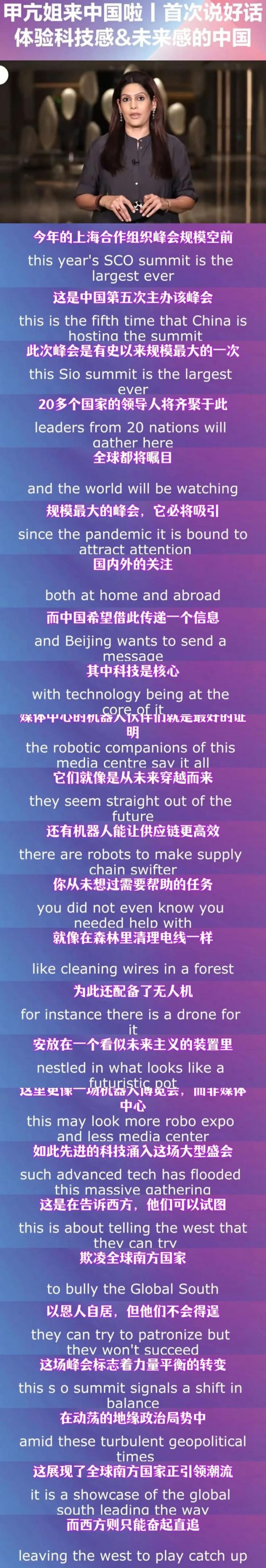 “甲亢姐”的转变映照出偏见在事实面前的不堪一击。中国的发展,不是靠外界的溢美之词堆砌,而是凭借实实在在的进步,赢得越来越多像“甲亢姐”这样的人,从偏见走向客观,从误解走向认可。而上海合作组织峰会,就是中国向世界展示自身发展成果与担当的绝佳舞台,让世界看到一个充满科技感、未来感且致力于推动全球共同发展的中国。