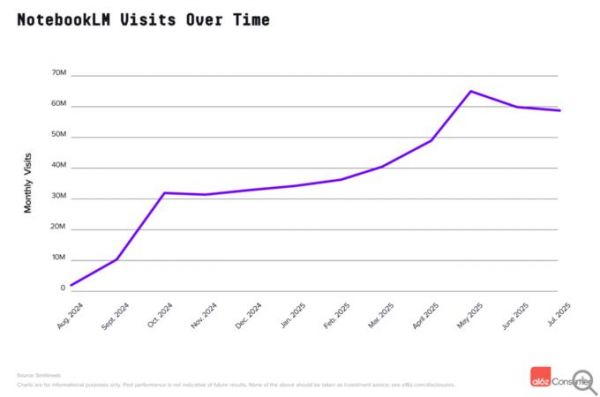 AI Studio作为面向开发者的沙盒平台成功跻身前10,该平台支持用户构建Gemini多模态模型应用。NotebookLM在从Google Labs独立后排名第13位,这一学术研究工具在近一年来稳步增长,仅在夏季学术用户流失期间略有下滑。