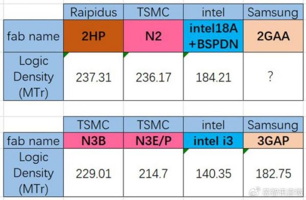 传Rapidus的2nm逻辑密度赶上台积电,并大幅领先Intel 18A