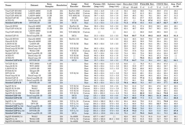 这些用于蒸馏训练的合成文本描述,提升了模型的语义覆盖范围,使得MobileCLIP2-B比MobileCLIP-B在ImageNet-1k零样本任务的准确率上提高了2.2%。