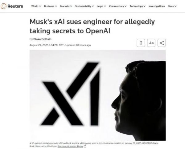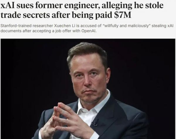 8月29日,马斯克旗下公司xAI向美国加州联邦法院提起诉讼,直指前雇员、华人研究员李雪晨(Xuechen Li) 在辞职加入 OpenAI 之前,恶意窃取公司核心机密,并将这些机密带入竞争对手。