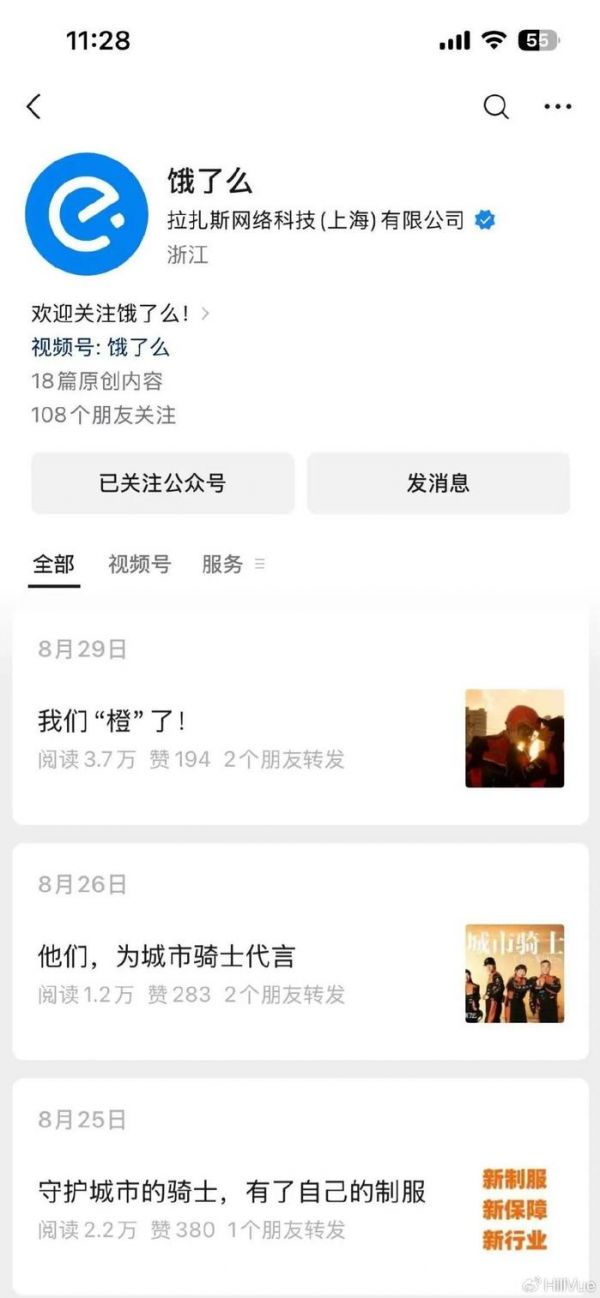 翻看过去两个月来饿了么官方微信公众号的发文,蓝色元素越来越少,橙色元素越来越多。过去一个月它甚至没有什么自主的内容,大多数推文都是直接转发淘宝闪购。