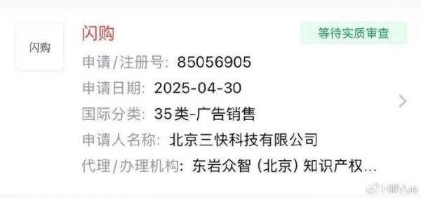也怪美团当年没做好商标防护。他们虽然早在 2018 年就注册了“美团闪购”的商标,却唯独漏下了“闪购”这一核心名词。痛定思痛之下,美团的同学们赶在 4 月 30 日淘宝闪购正式推出的第一天,就跑去提交了“闪购”商标的注册申请,但现在还处在实质审查阶段。