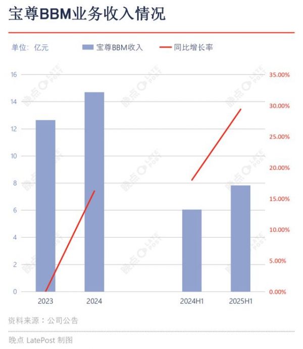 现阶段宝尊 BBM 由 Gap 和 HUNTER 两个品牌构成,目前主要由 Gap 品牌的销售收入贡献业务营收,2023 年和 2024 年 BBM 收入分别为 12.65 亿元和 14.70 亿元,增速为 16.2%;2024H1 和 2025H1 的这一业务收入分别为 6.05 亿元和 7.83 亿元,同比增长 29.4%。