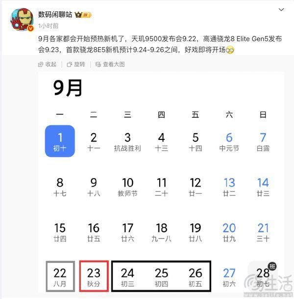 新旗舰SoC发布时间曝光,最早或9月22日亮相