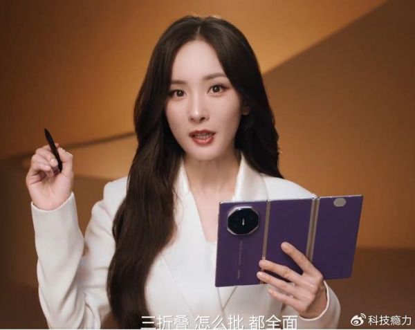杨幂用华为Mate XT非凡大师接电话:脸被遮住了
