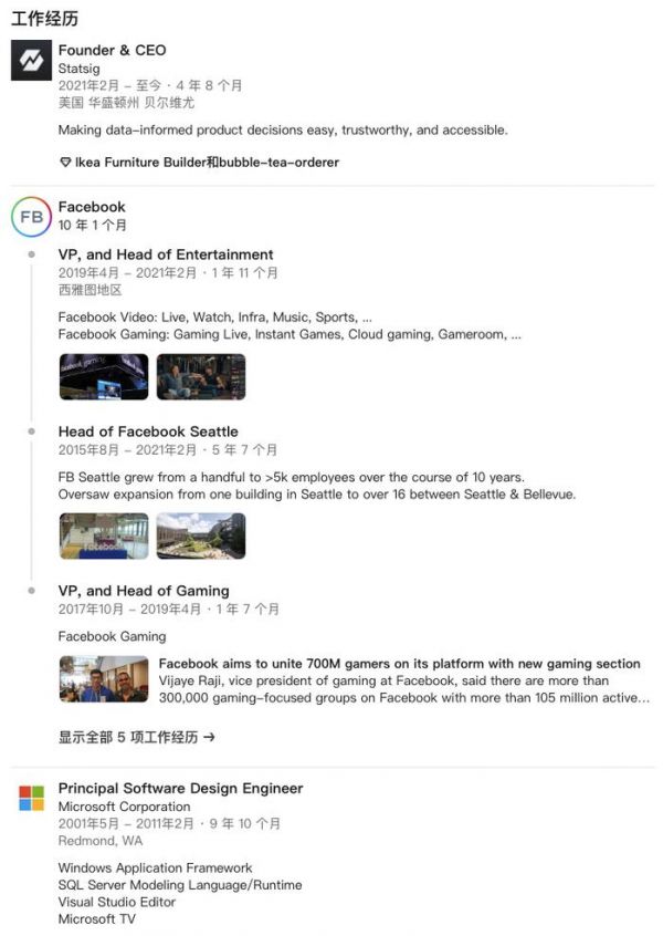 ▲Vijaye Raji之后其加入Facebook,推出了Messenger for Windows、Marketplace、Groups Commerce等产品,并最终担任游戏与娱乐部门副总裁,领导Facebook西雅图分部从十几人扩展到8000人规模。这些经历为Statsig的发展奠定了坚实的工程和管理基础。