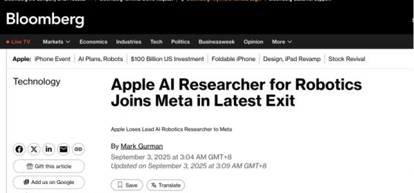 苹果AI 雪崩内幕:核心大将14亿被挖走,团队边缘化,骨干接连“叛逃”