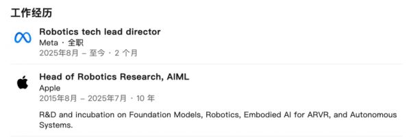 毕竟Meta和苹果的机器人相关业务都还在发展当中,而十年老将却选择了Meta,这是不是一种“用脚投票”的方式?