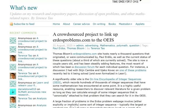 [3]https://terrytao.wordpress.com/2025/08/31/a-crowdsourced-project-to-link-up-erdosproblems-com-to-the-oeis/