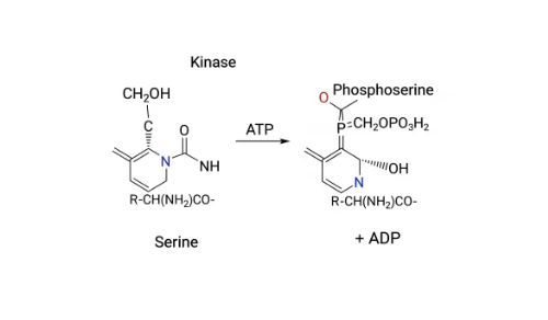 图3 酪蛋白中的丝氨酸被磷酸化(加钩子)的结构变化。