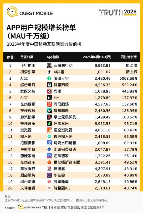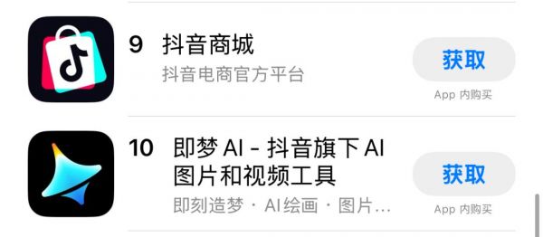 抖音商城以及即梦AI分别位列第9名和第10名,前10名中,字节占了6个,堪称霸榜。