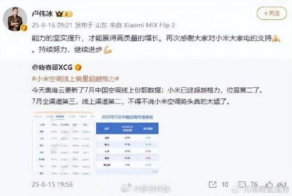 起初,小米高管转发了一份“7月中国空调线上份额数据”,显示小米超越了格力,遥遥领先。