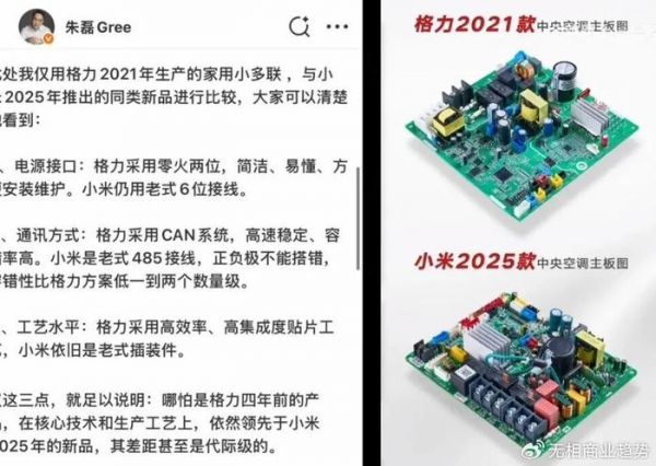 同时,还有自媒体博主po出一组内部元器件图,暗贬格力设计落后,没有小米技术先进。