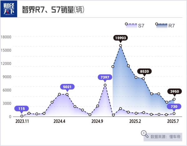 其实在这次改款前,智界S7经历过三次上市,智界R7更是在今年4月才进行了首次换代更新,只是这些动作对实际销量没有太大帮助。