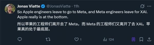 7月17日,高级大型语言模型研究员Tom Gunter离职,加入Meta;