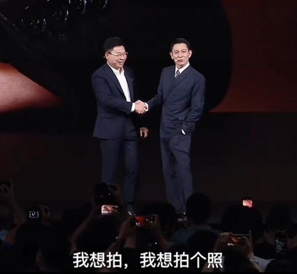 在发言结束后,刘德华拉着余承东要起了合照,余承东现场特别激动,他坦言刘德华是他心目中最帅的男人。