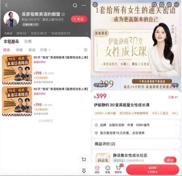相比之下,知识付费利润率更高,399元课程的成本远低于实体商品。公开资料显示,吴彦祖的英语课在5天内销售额突破500万元,带动课程背后的合作方高途资本股价曾单日涨幅逾30%。向太课程销售额超200万元,这些都印证了市场潜力。