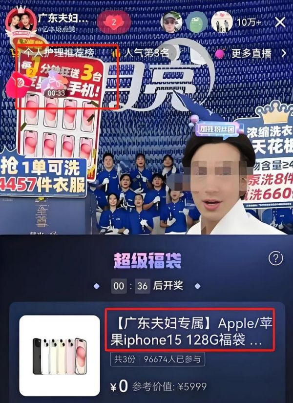 从这一年起,蓝月亮全面押注直播赛道,密集与“广东夫妇”、“董先生”、“陈三废”等超头主播合作,声势浩大。例如,年初与“董先生”联手,5分钟售出1.7万单“至尊洗衣液”,单场GMV突破640万元;618期间再与“广东夫妇”合作专场,送出5000台苹果手机,仅投流与赠品成本就高达约4000万元——堪称“烧钱卖货”的典型。