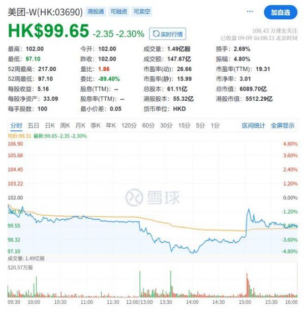 而其主要竞争对手美团港股收盘下跌2.3%。