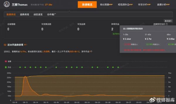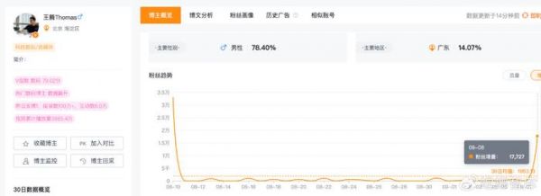 据报道,9月8日晚,小米内部通报,原小米中国区市场部总经理、REDMI品牌总经理王腾因泄密被辞退。查询某视频平台发现,“王腾Thomas”账号已设置成私密状态。第三方数据显示,“王腾Thomas”短视频平台账号近30日涨粉16.97万。该账号1-20s视频预估报价为2.64万,21-60s视频预估报价为2.7万,60s+视频预估报价为3.85万。此外,“王腾Thomas”某社交平台账号9月8日致歉当日涨粉超1.7万。