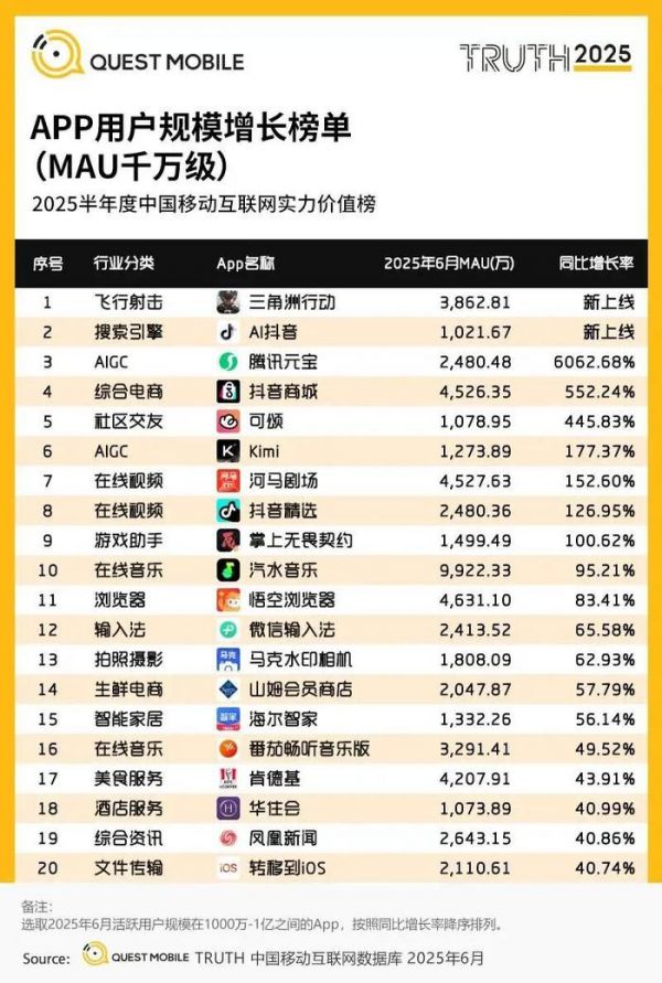 在榜单前五名中,三款来自字节跳动——豆包、红果短剧、汽水音乐。同时,抖音商城和星绘AI也跻身前十。