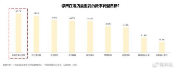 面向国内酒店行业的调研数据也揭示了酒店智能化与住客满意度的关系:在 2025 年《中国酒店业数字化转型趋势报告》中,宾客数字化体验以 57.4% 的得票率,成为酒店行业最重要的数字转型目标。
