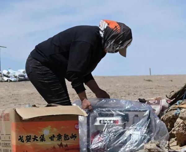 在河西走廊的牧区,当地牧民正拆开从拼多多上网购回来的发电机