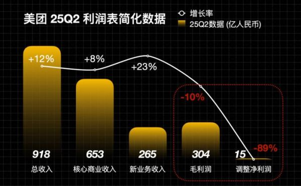 8月26日,美团发布第二季度财报,总营收918亿元,同比增长11.7%,净利润暴跌89%,相比去年同期的136亿,只剩下了不足15亿元——与市场普遍预期的近百亿利润相距甚远。其实在Q1财报电话会议里美团就给过预警,公司会“不惜代价”守住份额,同时也必然会损失利润,只是让投资者没想到的,二季度的业绩会如此不堪。