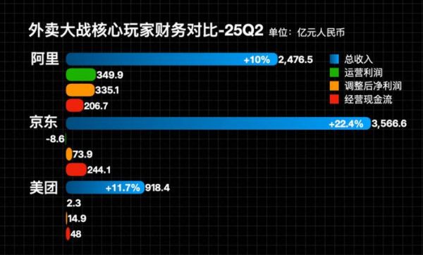 当然现阶段,阿里和京东在财报上也是顶着巨大的压力,阿里2026财年一季报(即2025自然年二季度)实现营收2477亿元,同比增长1.82%,经调整净利润同比下滑18%至335亿元。京东2025年二季度实现营收3567亿元,同比增长22.4%,经调整净利润74亿元,同比下滑49%,这一盈利数据好于此前摩根士丹利和花旗预期的下滑63%和68%。但长期这样烧也是会产生很大的财务问题。
