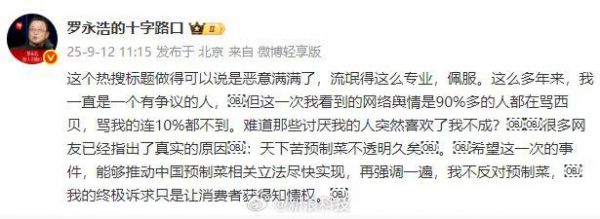 罗永浩:天下苦预制菜不透明久矣。希望这一次的事件,能够推动中国预制菜相关立法尽快实现,再强调一遍,我不反对预制菜,我的终极诉求只是让消费者获得知情权。