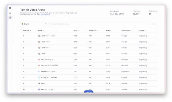 除了Sora、可灵、海螺这些比较热门的视频生成模型,Google的Veo 3一直在大模型竞技场,文生视频类别下,名列前茅。
