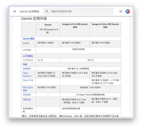 Google最近更新了Gemini免费和付费用户具体的使用限制。免费用户使用Gemini 2.5 Pro和Deep Research的次数有限,但是nano banana的单价非常便宜,所以免费用户也有慷慨的100张生成机会。