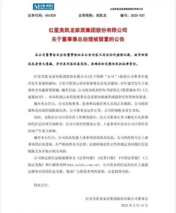突发!400亿家居大佬被调查留置