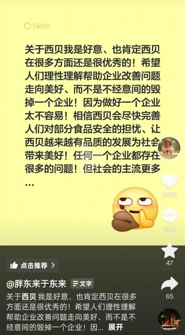 9月13日,于东来再次发文:“每个企业都会发生管理上的漏洞和经营上的问题,西贝如果有存在的问题,相信一定会积极调整处理解决、一定会越来越重视提升商品品质和顾客满意。相信西贝和更多企业会越来越好!”
