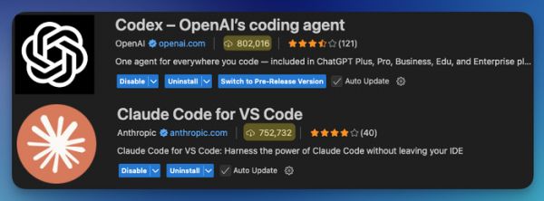 最初的代理式 SWE 外壳叫做 10X,运行在终端里。如今,随着新 Codex CLI、“ChatGPT Codex”(现改名 Codex Cloud)、IDE 扩展(2.5 周安装量突破 80 万),以及 GitHub 代码审查机器人,OpenAI 已经形成了一整套覆盖各种需求的交互界面。