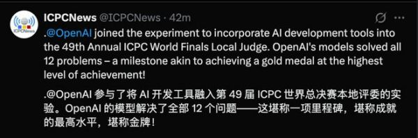 震撼!OpenAI在2025国际大学生程序设计竞赛拿下满分夺得第一,谷歌也取得金牌成绩