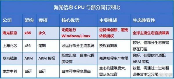 还有一类企业,如龙芯中科、华为鲲鹏等,它们并非x86架构,而是采用自主指令集或ARM授权,兼容性不及海光信息。