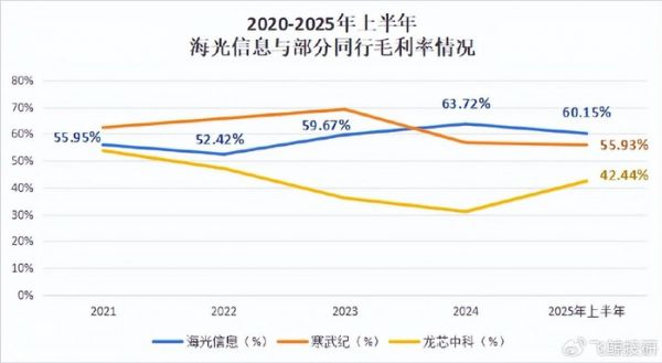 海光信息的优势,在其高毛利率上体现得淋漓尽致。2024年,海光信息毛利率达到了63.72%,首次反超寒武纪;2025年上半年,公司毛利率持续领先寒武纪、龙芯中科等。