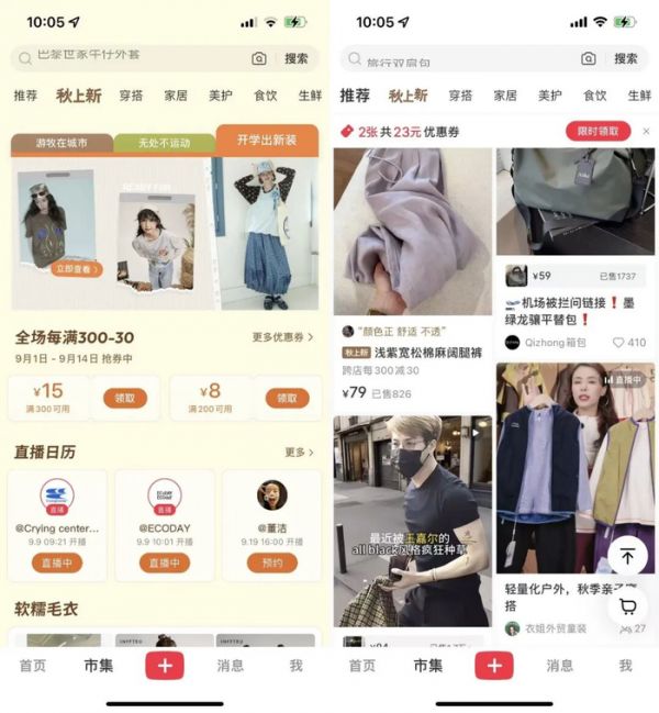 在电商业务方面,小红书的最新动作则是将今年6月推出的“友好市集”升级为平台一级入口,以“市集”版块置于App底部导航栏。