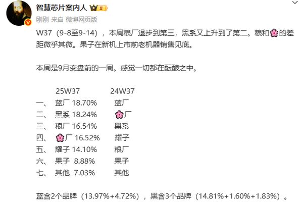 网址: 2025年第37周中国手机市场份额排名 第一第二仅差0.5% http://www.xishuta.cn/newsview142056.html