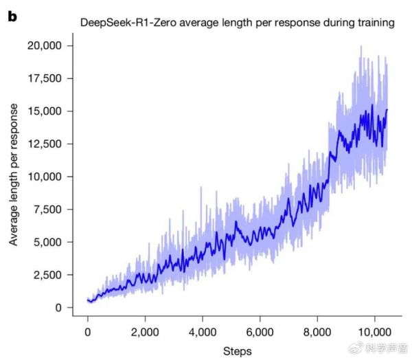 强化学习过程中 DeepSeek-R1-Zero 在训练集上的平均响应长度。来源:Nature