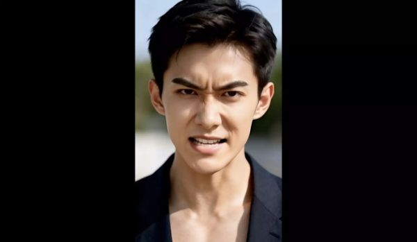 (可灵AI数字人视频截图)在这个表现“愤怒”情绪的案例中,根据音频内容和提示词“内心全是气愤,非常生气”。模型精准地将这种抽象情绪转化为具体的面部微表情——紧锁的眉头、紧抿的嘴唇和充满压迫感的眼神,将角色的内心怒火展现得淋漓尽致。