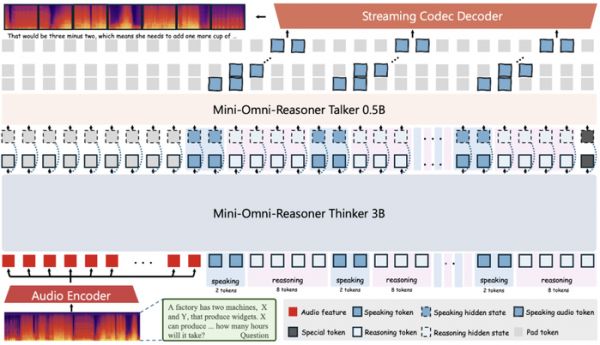 模型架构:Mini-Omni-Reasoner 采用了 Thinker-Talker 架构,像一对分工明确的搭档: