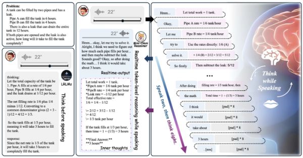 让我们暂时把视角放回人类自己。当一个人面对复杂问题时,往往不是「想完再说」,而是「边说边想」。当被问到「如何理解人工智能的未来」时,大多数人不会先默默推理数分钟再完整输出结论,而是会边思考边组织语言:「这个问题挺复杂的……我觉得可以从技术和社会两个层面来看……」