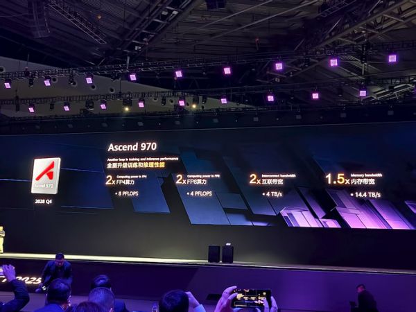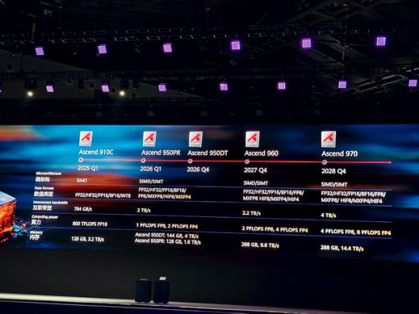 昇腾960性能规格将比昇腾950翻倍,支持华为自研的HiF4数据格式,能进一步提升推理吞吐,并且比业界FP4方案的推理精度更优,计划在2027年四季度推出;昇腾970的规格还在讨论中,相比昇腾960,昇腾970的FP4算力、FP8算力、互联带宽将全面翻倍,内存访问带宽至少增加1.5倍,计划在2028年四季度推出。