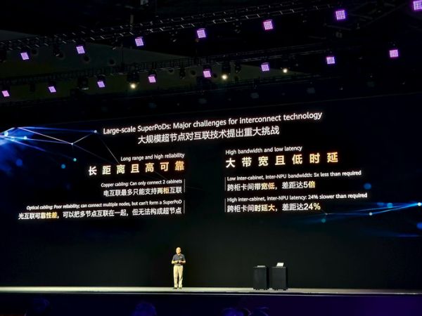 大规模超节点把智算和通算的能力都推向新的高度,同时也对互联技术提出了重大挑战。华为作为联接领域的领导者,当然不惧挑战。在定义和设计Atlas 950、Atlas 960两个超节点的技术规格时,我们遭遇到了互联技术的巨大挑战,主要在两个方面: