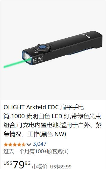 在亚马逊平台上,一款标价79.96美元(约人民币568元)的手电筒,近一个月卖出超过100件;