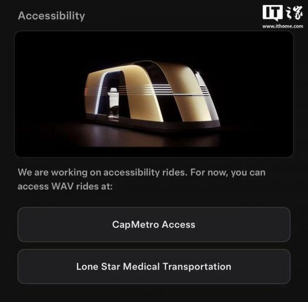 IT之家 9 月 21 日消息,特斯拉在其 Robotaxi 应用中表示,目前正致力于推出“无障碍出行服务”(accessibility rides),该服务将能够让残障人士呼叫 Robotaxi。