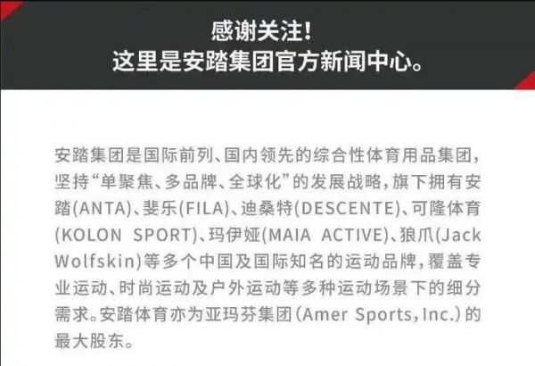 9月21日,极目新闻记者就此事致电安踏官方客服,对方回应称:“您所咨询的问题目前不在客服掌握范围内,我们主要负责解决安踏集团旗下安踏品牌的相关问题。”记者尝试联系安踏集团,但电话始终未能接通。(据9月21日极目新闻报道)